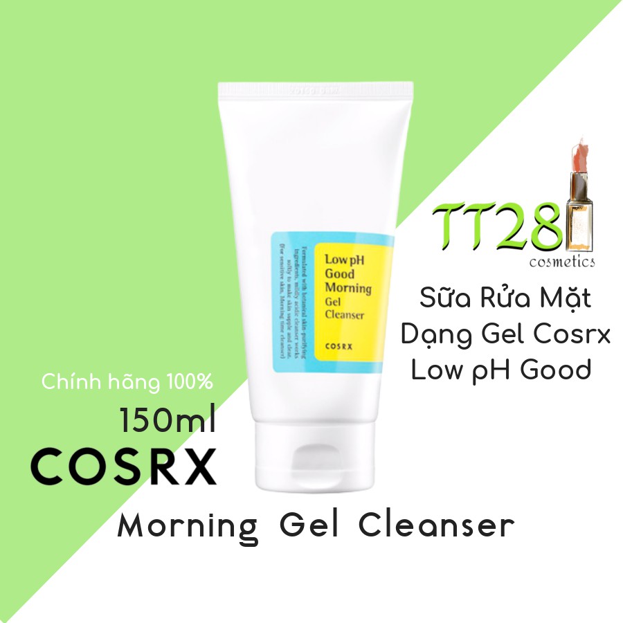 Sữa rửa mặt dạng gel cosrx low ph good morning gel cleanser. Mặc dù kết cấu gel lỏng nhưng sản phẩm lại cho khá nhiều bọt giúp giảm tổn thương trên da khi rửa mặt. Sữa rửa mặt cosrx low ph good morning gel cleanser. Sữa rửa mặt cosrx low ph good morning gel cleanser đến từ thương hiệu mỹ phẩm cosrx một trong những thương hiệu mỹ phẩm đình đám với một loạt các sản phẩm chăm sóc da gây tiếng vang lớn như serum cosrx tẩy da chết hóa học cosrx cosrx low ph good morning gel cleanser có độ ph 5 0 6 0 tương đương với độ ph. Mình mua cosrx low ph good morning gel cleanser với giá khoảng 220k đó là mức giá rất hợp lí cho một em sữa rửa mặt dịu nhẹ 150ml.