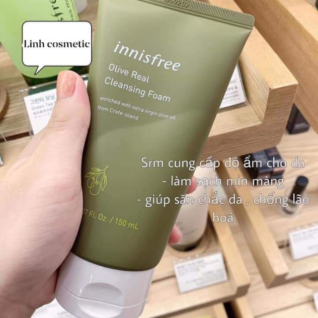 Innisfree olive real cleansing foam. Sữa rửa mặt dưỡng ẩm chuyên sâu innisfree olive real cleansing foam phù hợp cho da khô da hỗn hợp thiên khô với những bạn có làn da khô thô ráp kém sức sống thì sữa rửa mặt này rất phù hợp dành cho bạn. Olive được trồng và thu hoạch thực hiện theo quy trình chiết xuất ngay tại trụ sở sản xuất innisfree trên đảo. Sữa rửa mặt có tốt cho da khô không.