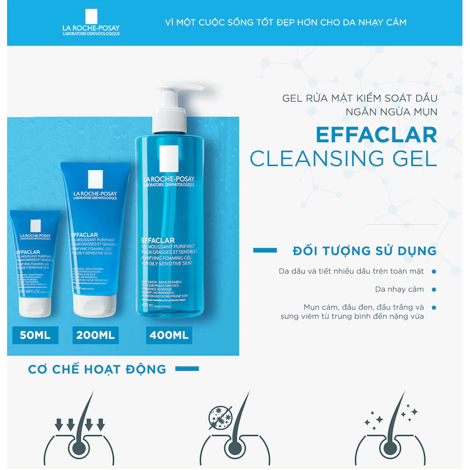 Sữa rửa mặt da dầu la roche posay effaclar gel moussant purifiant nhãn hiệu.